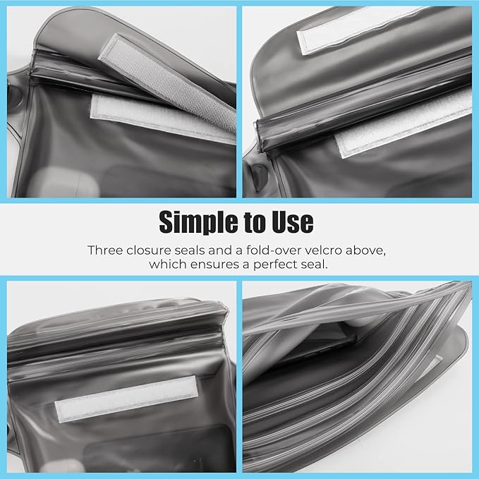 - 𝟏𝟎𝟎% 𝐖𝐚𝐭𝐞𝐫𝐩𝐫𝐨𝐨𝐟 - The waterproof pouch bag made from high quality and tough PVC material with waterproof coating. Super waterproof seal performance IP68 waterproof and scratch-resistant material have been upgraded and more durable! The dry bag with three Zip-lock Seals and a Folding Velcro over top. Perfect for camping, hiking, snorkeling, swimming, sailing, paddle surfing, tubing, kayaking, rafting, water slides or water sports, etc.