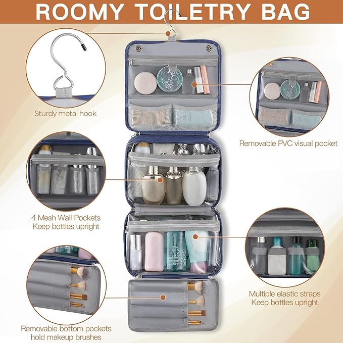 - EASY TO CARRY & TRAVEL KIT: Features a convenient carry handle on the top and a swivel non-slip metal hook for versatile hanging options. Ideal for overnight stays, long journeys, business trips, gym showers, and outdoor activities. Certainly an excellent choice for Christmas, birthdays, or as a thoughtful present for yourself, your family, and your friends.