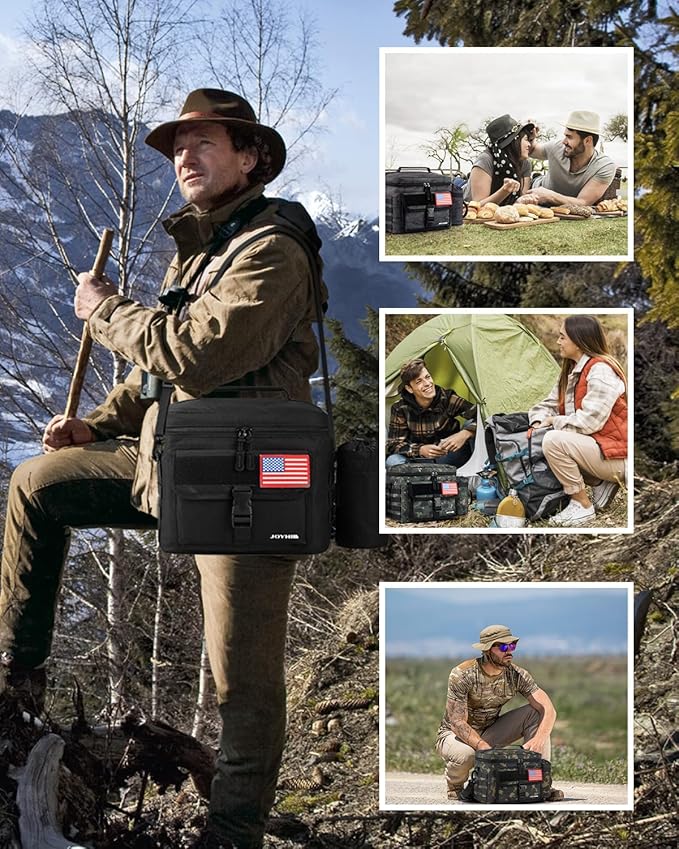 - Tactical & Practical Design: This insulated cooler bag combines outdoor ruggedness with tactical versatility. Includes an adjustable strap for easy carry and a front pocket for personalization. This lunch box cooler can be messenger bag or a handbag
