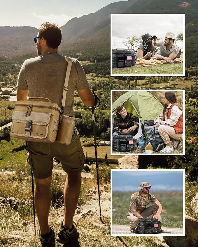 - Tactical & Practical Design: This insulated cooler bag combines outdoor ruggedness with tactical versatility. Includes an adjustable strap for easy carry and a front pocket for personalization. This lunch box cooler can be messenger bag or a handbag