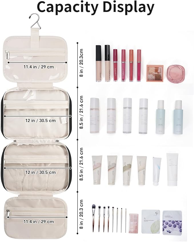 Travel Toiletry Bag for Women Large Hanging Makeup Bag Organizer Toiletries Bag for Full Size Essentials Accessories Cosmetics (Black (Large))