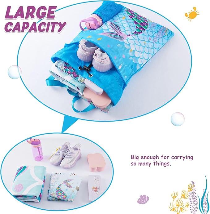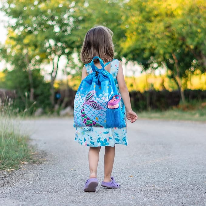 - ATTRACTIVE LOOK: Designed and manufactured by ourselves. Advanced printing process. A lifelike mermaid appears on the kids' backpack, surrounded, seahorses, and sea grass. Kids will love it