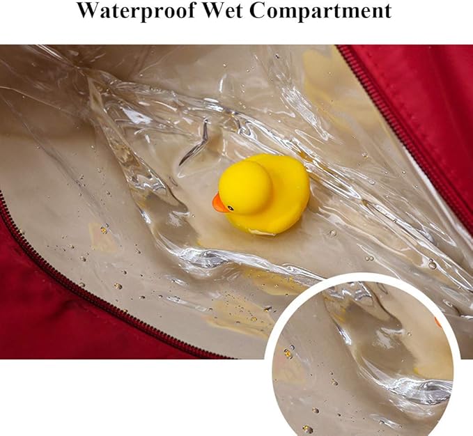 - ✔【Functional Division】Our duffel bag includes 3 main functional partitions.1 large space main pouch,1 fully waterproof wet pocket(for wet swim wear/ sweat gym clothes, socks and towel),1 independent shoe compartment(fit 13' sneakers).