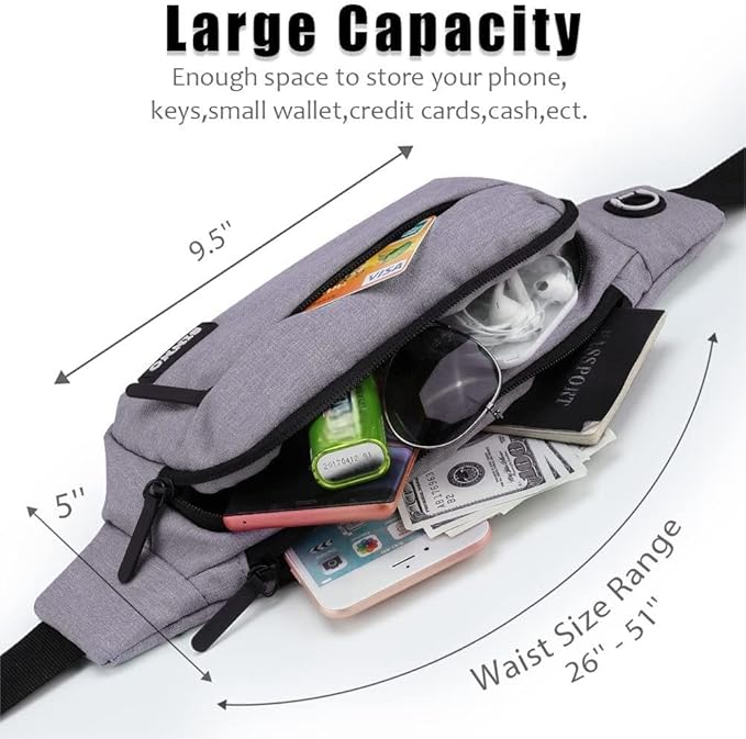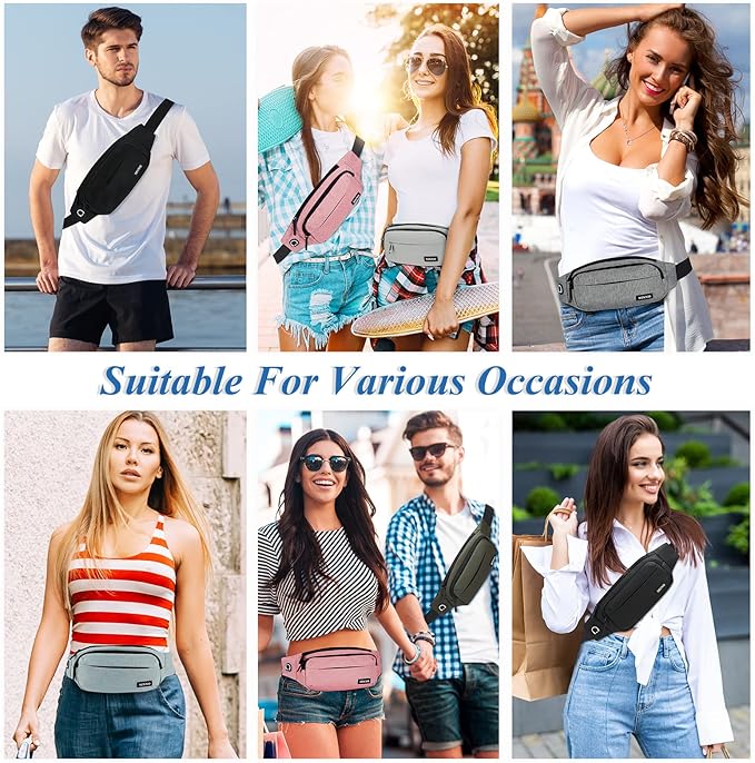 • 【Best Gifts for Men Women】Our fanny pack size is about 13.5"x 5" x 3.5" with 4(Four) zippered pockets perfect for most people who want to be hands free to carry the most needed items,include all size of phone(iphone 13 14 pro max...), passport, keys,ID and other travel essentials. Perfect for various outdoor activities such as Running,Hiking,Shopping,Traveling,Walking Dog,Jogging,Cycling,Fishing,Going to Sporting Events,Themepark,Day Trips,etc.A great Gift for Women Men Kids and Family.