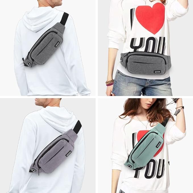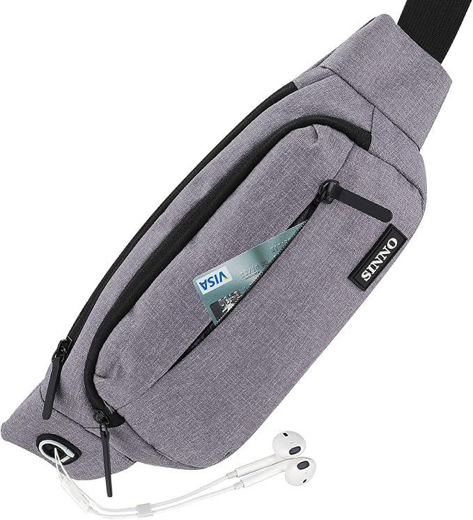 SINNO Large Crossbody Fanny Pack for Women Men Belt Bag With 4-Zipper Pockets for Travel Running Hiking Workout Dog Walking Outdoors Sport Fishing Waist Pack Bag Carrying All Phones