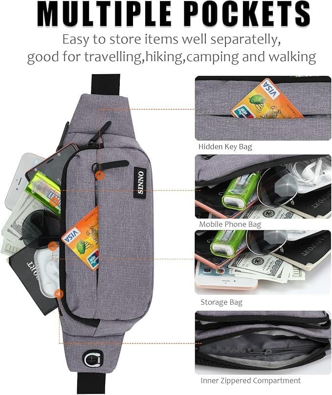 • 【Have More Safety and Fun】With our creative design womens mens fanny pack,a small hidden zipper compartment inside the main pocket perfect for your valuables for extra security.The headphone hole allows you to listen to music or the function of call during fitness and walking so that you can free your hands to enjoy your personal time.