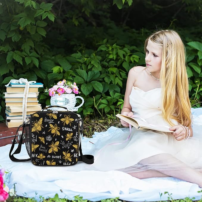 cfpolar Insulated Lunch Bags Animal Bee Letter Quote Lunch Box for Men Boys Girls Reusable Mini Cooler Lunch Tote Lunchbox Thermal Meal Tote Kit with Shoulder Strap for Work School Picnic
