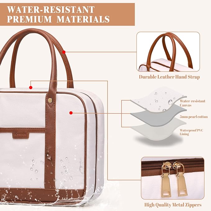 - HIGD QUALITY MATERIAL-Our travel toiletry bag is made of premium water-resistant canvas and PU leather fabric with supple touch.Reinforced leather hand strap design, can better bear weight and is convenient to carry during travel.