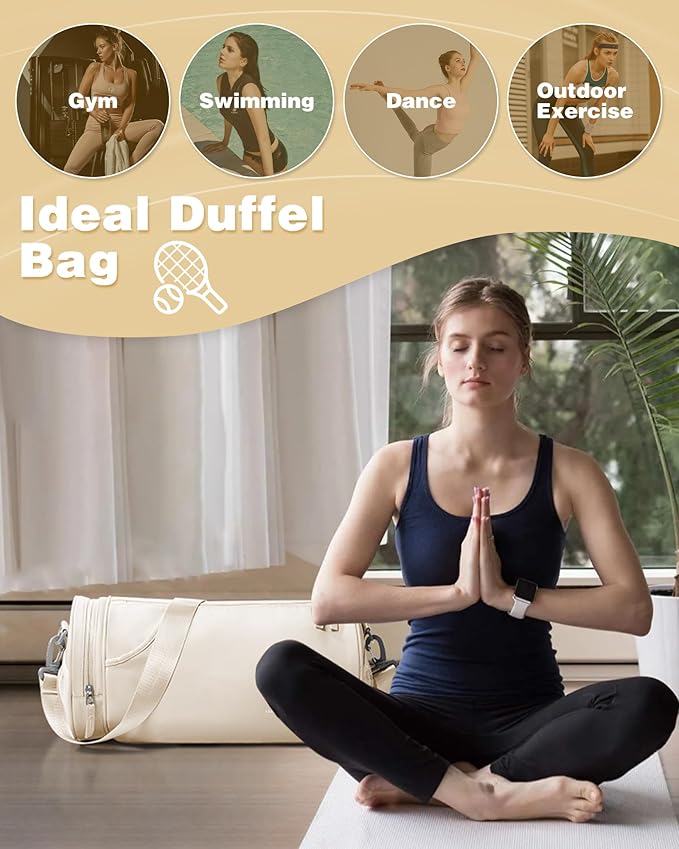 Small Women's Workout Bag - Waterproof Mini Duffle Gym Bag with Wet Pocket - Carry On Weekender for Dance, Swimming, Yoga, Fitness - White