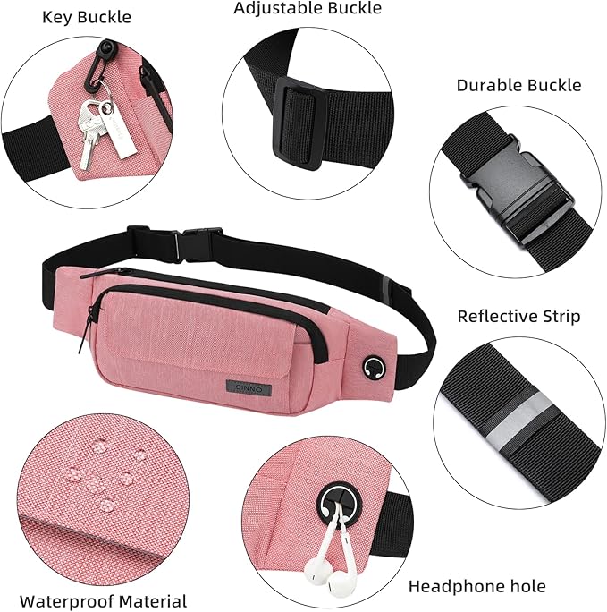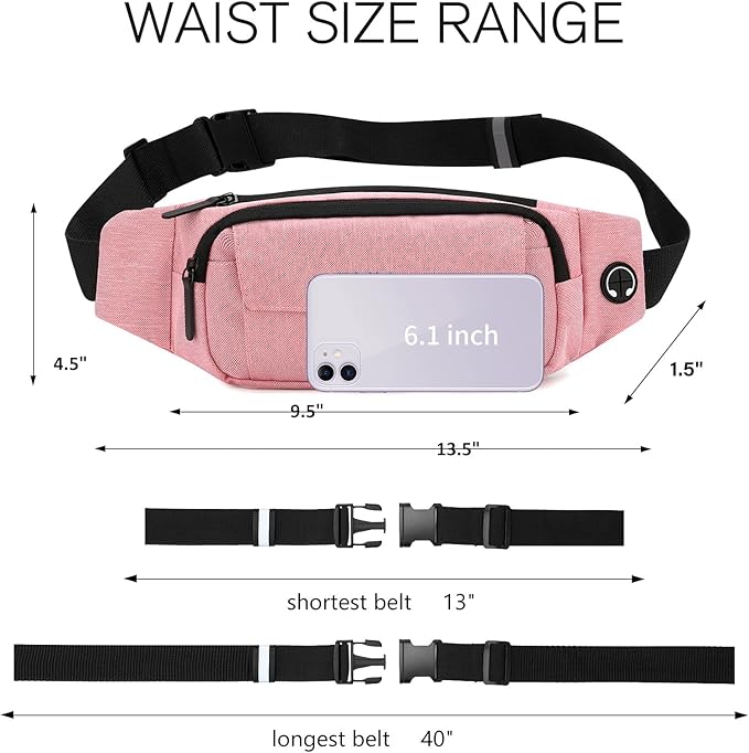 • 【Reflective Loop And Convenience Headphone Hole】 The reflective loop on the fanny pack belt allows you to be safer when running or walking at night. The headphone jack allows you to listen to music or call during exercise,free your hands to enjoy your personal time.