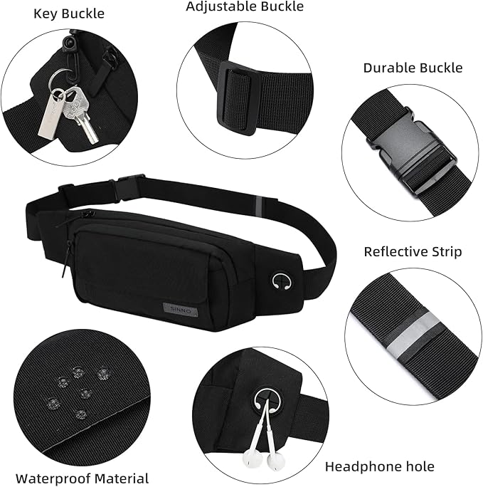 - 【Reflective Loop And Convenience Headphone Hole】 The reflective loop on the fanny pack belt allows you to be safer when running or walking at night. The headphone jack allows you to listen to music or call during exercise,free your hands to enjoy your personal time.