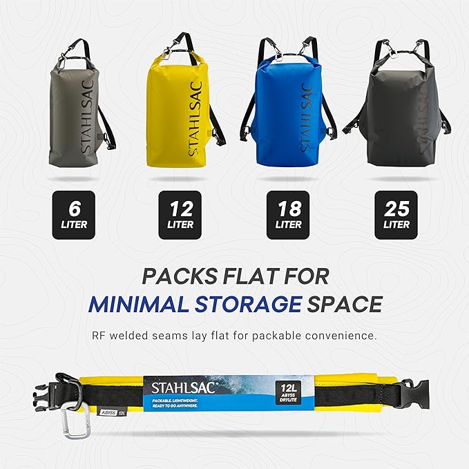 Stahlsac Abyss Drylite Dry Bag 25L in Dark Grey | Durable Waterproof Bag | Lightweight Dry Bag Backpack for Boating, Hiking, Kayaking, & Rafting | Tested for Enhanced Durability | Removable Straps