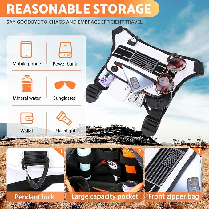 - Compact Men Chest Bags. When you put lots of accessories inside, the bag will NOT be Bloated. The Material we used for this chest pack is Water Resistant and Anti-Scratch Nylon, You will keep your item dry and safe from rainy day or sharp tools.