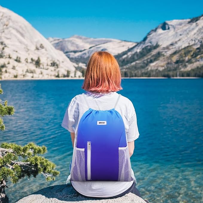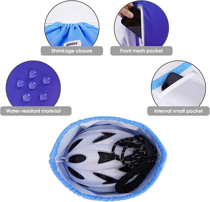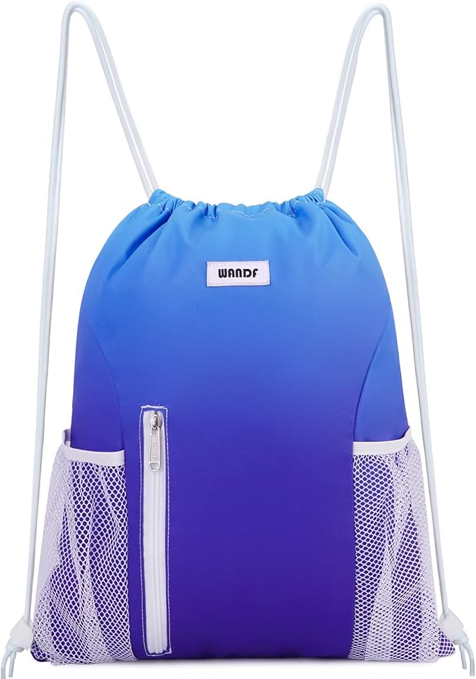 WANDF Drawstring Backpack Sports Gym Sackpack with Mesh Pockets Water Resistant String Bag for Women Men (Blue)