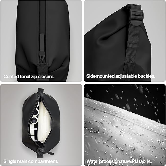 - WATERPROOF: This weekend wash bag is characterized by its minimal silhouette accented by side mounted buckles. The buckles can be adjusted to compress the design. The feature keeps contents in place, while helping to make the best use of luggage space. The wash bag features a roomy main compartment with ample room for daily wash and grooming items.