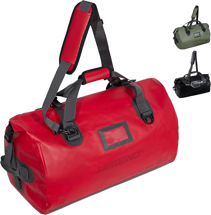 LEGEND Waterproof Duffel Bag - Heavy Duty Duffle Bag for Outdoor, Camping, Boating & Travel, Premium PVC Dry Duffel Bag, Motorcycle Dry Bag with Durable Strap & Handles with Large Storage - 60L Red