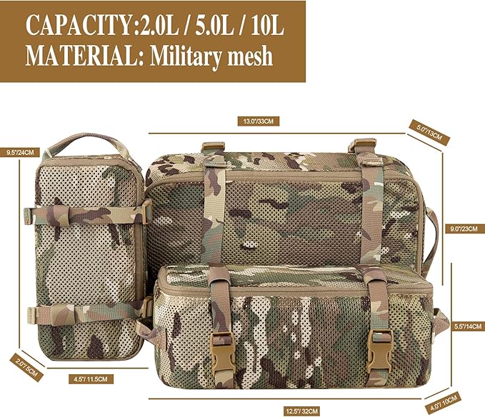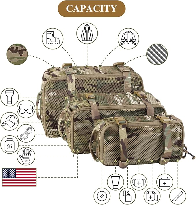 PETAC GEAR 3 PCS Tactical Modular Packing Cubes, Large Capacity Mesh Storage Bag,Outdoor Travel Organize Storage Pouches Bags.