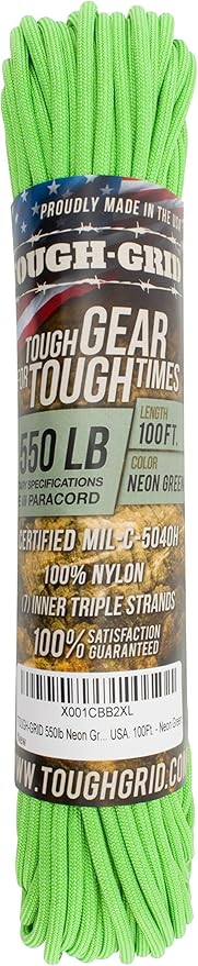 - PEACE OF MIND IN ANY SITUATION: Trust TOUGH-GRID Parachute Cord to provide reliable performance when it matters most. Made in the USA with pride and craftsmanship, our cord offers peace of mind, knowing you have the toughest cord around, ready to tackle any outdoor challenge.