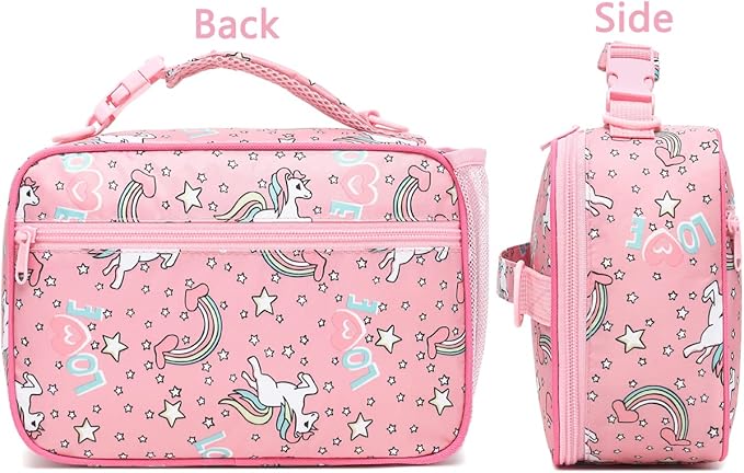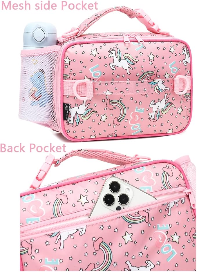 - ✿【Larger Capacity & Extra Storage】Dimension: H: 4.33 x W: 7.7 x L: 10.6 inches, It is lightweight and there is enough capacity to take daily meals and snacks for your kids. The internal mesh pocket is great for holding knives, forks, spoons, napkins, cards, and other small stuff. The side pocket is for your drinks, bottles, and even umbrella.