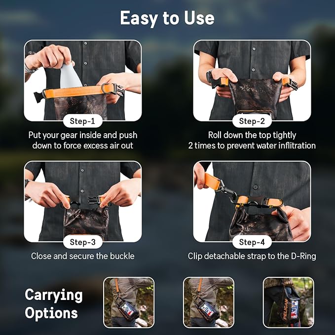 - Package Contents: 1 Unit of Pelican Waterproof Dry Bag - Marine Series Hunter Camo 5L + (1) Detachable Keychain Lanyard; 1-Year Warranty