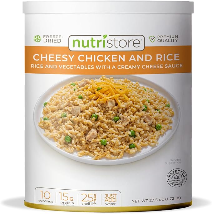 Nutristore | Freeze-Dried Cheesy Chicken and Rice | Emergency Survival Bulk Food Storage Meal | Perfect for Everyday Quick Meals and Long-Term Storage | 25 Year Shelf Life | USDA Inspected