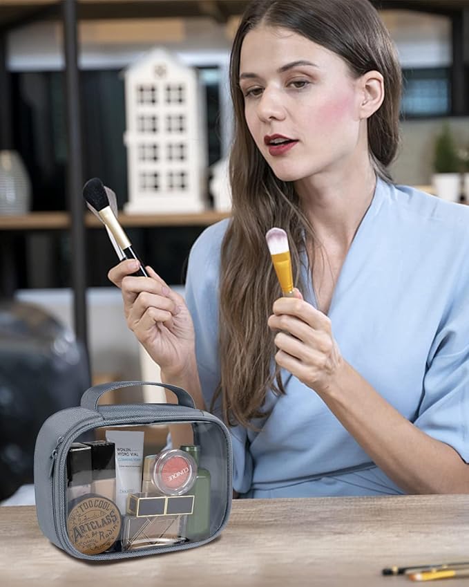 Moyad TSA Approved Clear Toiletry Bag with Handle, 1 Pack Quart Size 3-1-1 Liquids Pouch for Travel, Transparent Makeup & Cosmetic Organizer for Women Men, Grey