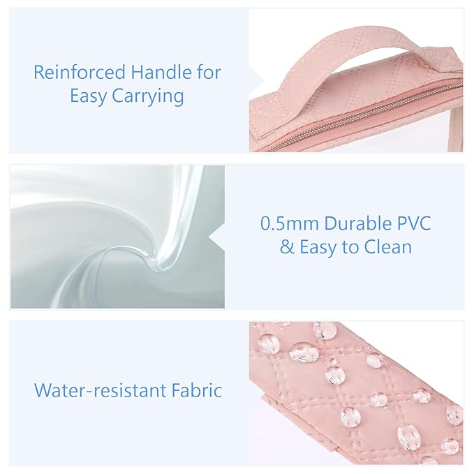 - Transparent Side, Scanning Inside Easily: Both sides are made of 0.5 transparent PVC plastic, so you can scan directly inside without any obstacles. The surrounding is made of splash-proof fabric, the reinforced seams prevent the travel toiletry bag from tearing easily. Overall thickness ensures durability and abrasion resistance