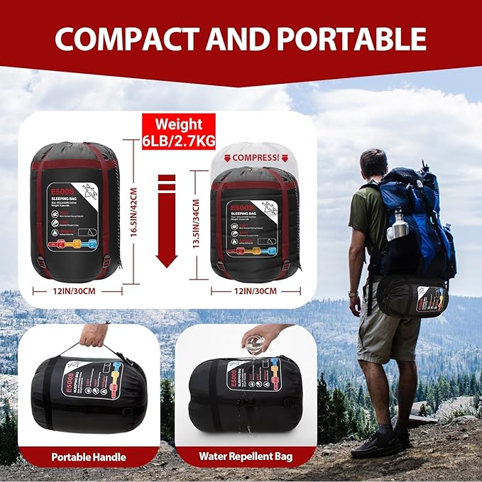 - EASY PACKING AND CLEANING - This xl sleeping bag package size is 16.5 x 12 in, weight 6 lbs. Comes with a compression sack, Machine washable, perfect for hiking, backpacking, car camping, and more