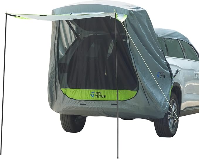 JOYTUTUS SUV Tailgate Tent with Awning Shade, Car Roof Canopy and Poles, Water Resistant Camping Tent, Outdoor Travel Preferred, Universal Fit Most SUV- Green