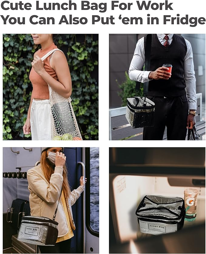 SUNNY BIRD Insulated Lunch Bag with Foldable and Leakproof Design, Thermally Insulated, Shoulder Strap for Women, Men and Teen (Black 002)