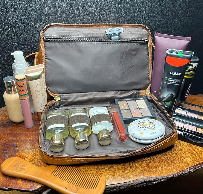 - ✅ Luxurious Leather Craftsmanship:- You will be blown away by how this Toiletry Bag looks and feels! For it's backed by generational experience of the artisans of India.