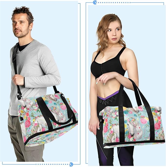- Including: 1 x wet and dry separation sports bag(17.32 x 8.66 x 15.55 in), 1 x cosmetic bag(7.09 x 3.15 x 5.12 in)