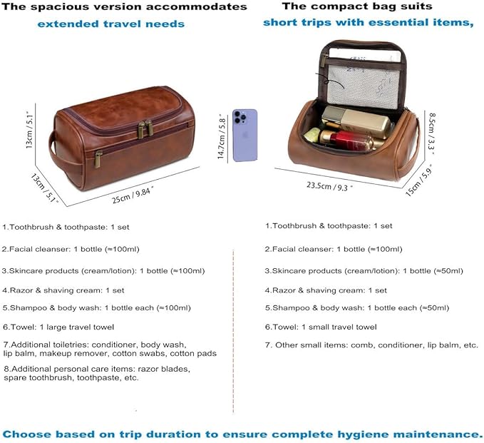 - 👨👨Superior Quality: A versatile and practical travel kit that combines style and functionality, which is pefect mens gift. Made from high-quality PU leather, waterproof and durable.The small toiletry bag for men is designed to withstand the rigors of travel and everyday use.It will undoubtedly become the ideal daily companion for every father, husband, and boyfriend