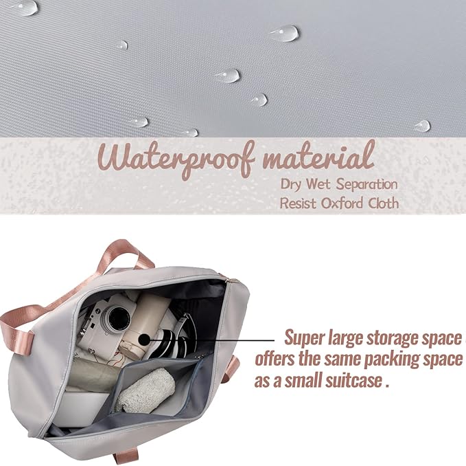 Large Travel Duffel Bag with Shoe Compartment, Gym Tote Carry on Bags for women, Lightweight Duffel Bags with Trolley Sleeve fit for Travel and Sport(Grey)