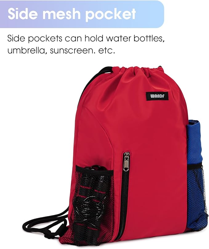 - EASILY ACCESS YOUR ITEMS---WANDF gym bag is divided diferente compartments with zipper and mesh. Zipper inner and front pockets give you a perfect classification for keys,ID cards,wallets,etc. Furthermore, drawstring closure allows you to store things quickly and take them in and out easily.