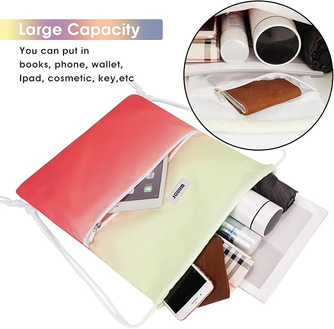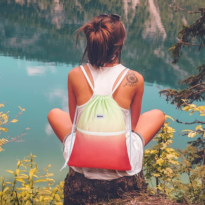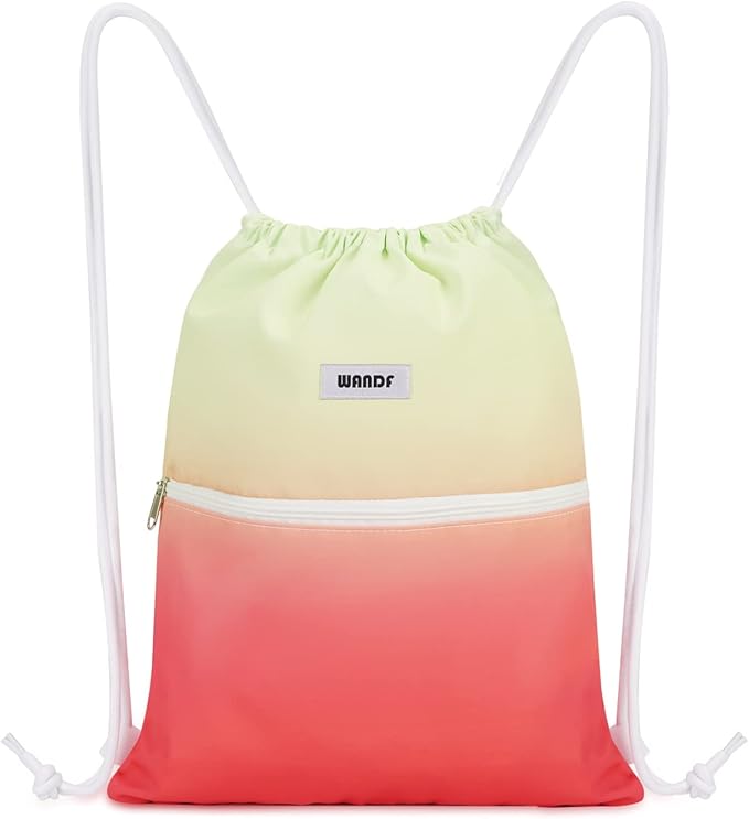 WANDF Drawstring Backpack String Bag Sackpack Cinch Water Resistant Nylon for Sport Yoga Gym Shopping (Red-Green Gradient)