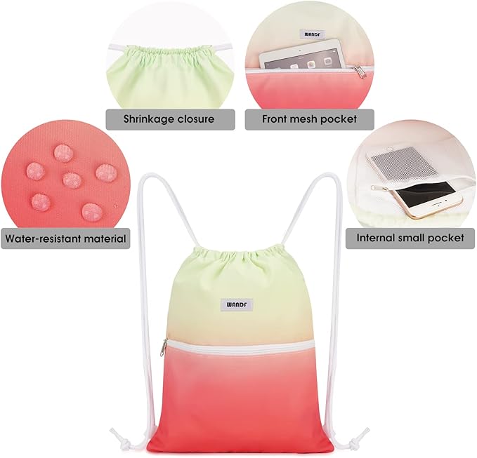 - PREMIUM MATERIAL FOR DURABILITY --- Made of water-resistant advanced technology high-quality polyester fabrics, WANDF drawstring backpack maintains its good performance when subjected to everyday wear-and-tear.