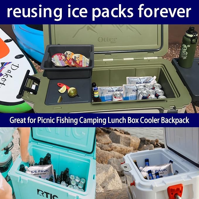- built to last :thickened ice pack are filled with a powerful cooling gel mixture that cools faster than ice cubes to keep cool, ice packs for large coolers and lunch boxes keep your drinks and food cool