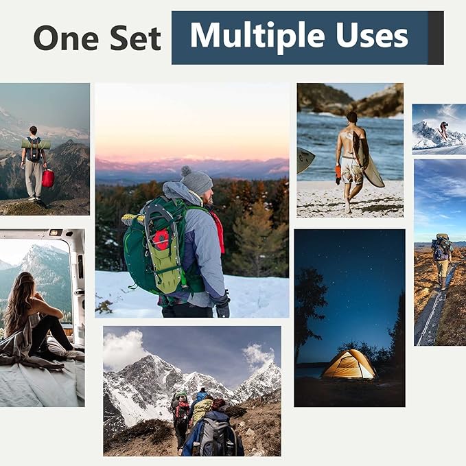 - MULTIPURPOSE: This dry bag set is ideal for a wide range of outdoor activities, including backpacking, hiking, kayaking, boating, camping, cycle touring, travel, and more.