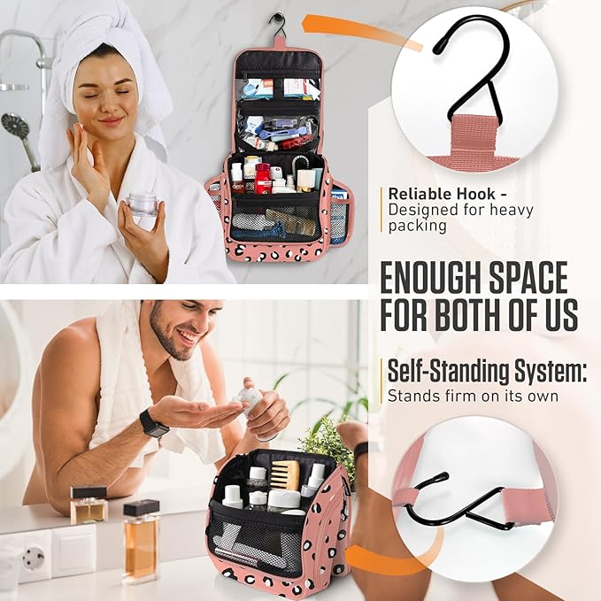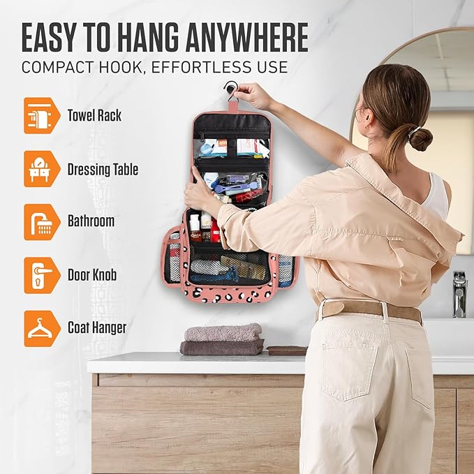VENTURE 4TH Hanging Travel Toiletry Bag for Women & Men - Travel Organizer with Expandable Compartments & Removable Clear Pouch for Toiletries (Pink Cheetah)