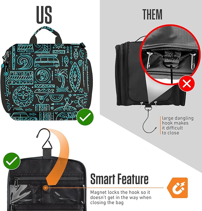 VENTURE 4TH Hanging Travel Toiletry Bag for Women & Men - Travel Organizer with Expandable Compartments & Removable Clear Pouch for Toiletries (Surfing Vibes)