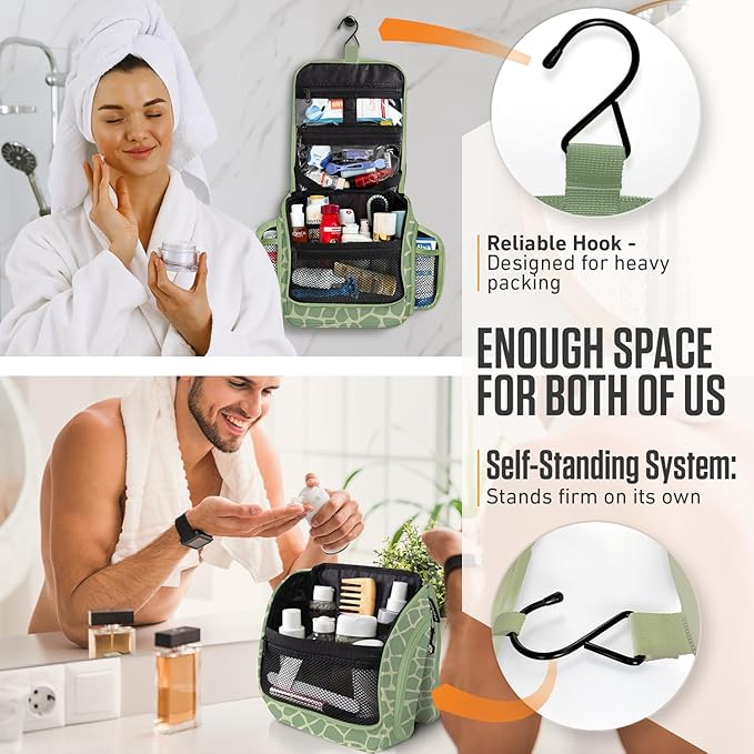 VENTURE 4TH Hanging Travel Toiletry Bag for Women & Men - Travel Organizer with Expandable Compartments & Removable Clear Pouch for Toiletries (Olive Giraffe)