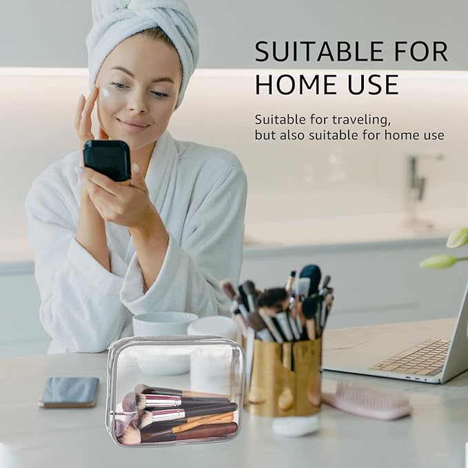 - Improved 0.6mm thickened transparent PVC material, softer and more pliable, durable and reusable; 3 PACKS 3 DIFFERENT SIZES: 1x Large clear toiletry bag (11.8" x 3.9" x 8.7"), 1x Medium clear makeup bag (9.5" x 1.9" x 7.9"), 1x Small clear cosmetic bag (7" x 1.6" x 5.5")