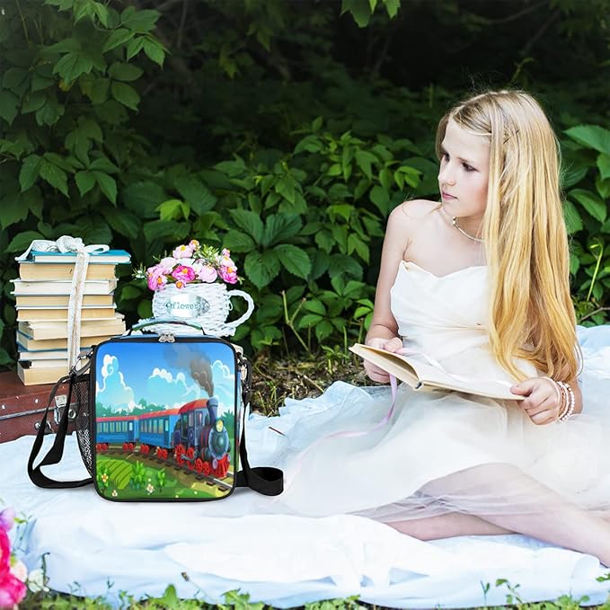 - 🌻【Convenient & Versatile】--Excellent build quality with funny patten, this train lunch bag is easy to carry for everyone, such as children, girls, boys, students, and is also great for travel, school, beach and picnics. The exceptional insulation of the bag keeps the food at the desired temperature, ready for consumption.