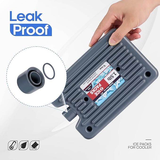 - 【Durable Leak-proof】-This ice packs for coolers is made of food-grade HDPE and has been tested for multiple impacts and drops before leaving the factory. Its sturdy and resilient shell can withstand repeated high drops without cracking or leaking. The lid is designed with a professional sealing structure to solve the problem of gel leakage caused by multiple freezing, and you don't have to worry about food contamination anymore.