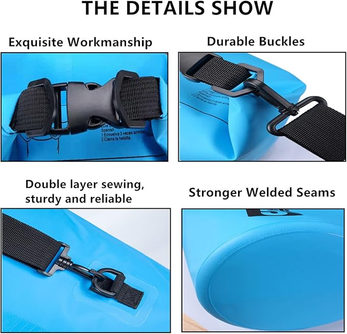 - DETACHABLE & ADJUSTABLE SHOULDER STRAPS – 10L floating bag comes with one shoulder strap, which is adjustable and removable, would meet your different demands for cross-body or shoulder carrying. If you need a dry bag for rafting, boating, kayaking, canoeing or just store your dry clothes for showering after playing the balls, AKJMMZ drybag could always be your optimal choice.