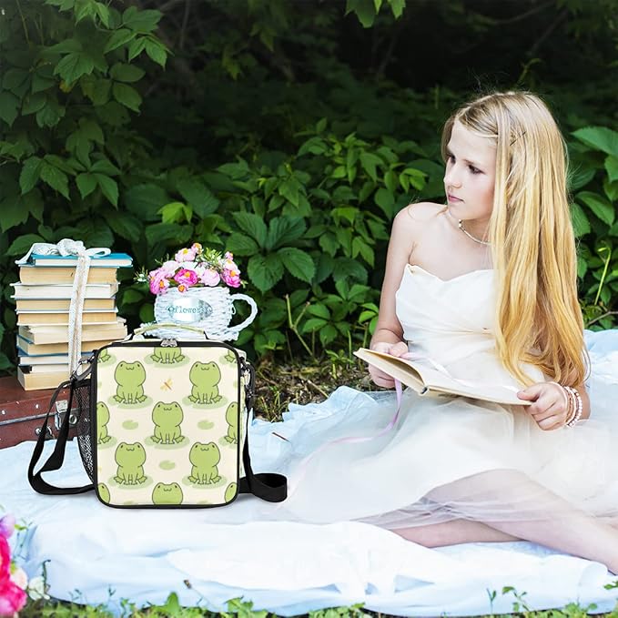 - MULTIFUNCTIONAL AND EASY TO CARE: lunchboxes kids frogs equipped with a front pocket for utensils and side mesh pocket to hold beverage. This lunch box with detachable buckle hand strap can be tied to any backpack and suitcase, making it the ideal lunch pail for work, office, school, and travel. The inside lining can be easily wiped clean with a damp cloth.