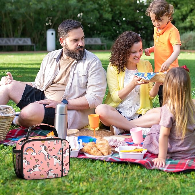 esouler Lunch Box Kids Insulated Lunch Bag for Boys & Girls Durable Children Lunchbox for School with Water Bottle Holder-Pink Unicorn