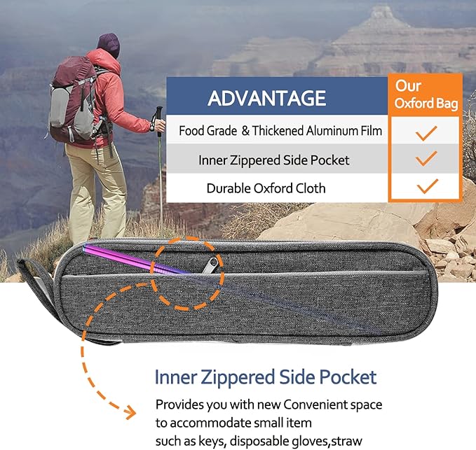 - HEALTH AND ENVIRONMENTAL PROTECTION- Say no to throwaway or single-use plastic flatware! It is an environmentally-friendly way to use this Reusuable travel flatware with chopsticks. The waterproof lining inside the travel cutlery sets is made of aluminum foil which is easy to clean.