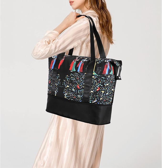 Womens Travel Duffel Bag Lightweight Sport Gym Bag Waterproof Weekender Overnight Bag with Wet and Dry Separation Pocket for Gym Training Yoga Fitness Swimming